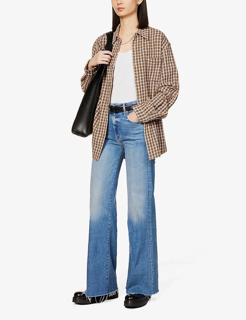 Be the first to review “MOTHER The Roller Flared-leg Frayed-hem Organic-cotton Jeans” Cancel reply