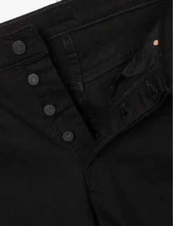 - Exposed button and concealed button-fly fastening at front