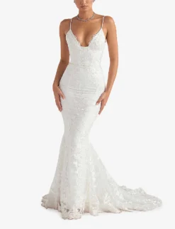 - Concealed hook-and-eye and zip fastenings at back