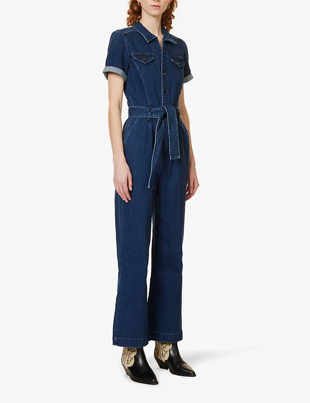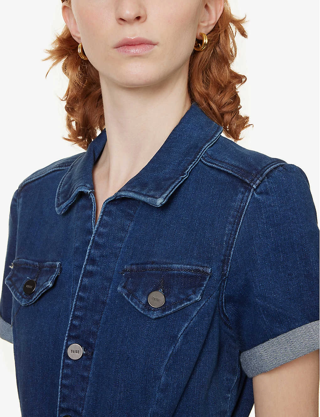 Be the first to review “Paige Anessa Short-sleeved Stretch-denim Jumpsuit” Cancel reply