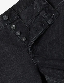- Exposed button and concealed zip-fly fastenings at front