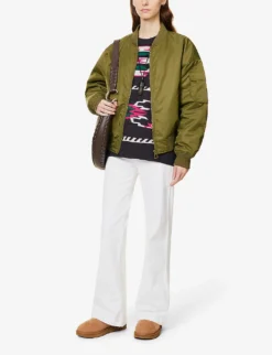 - Exposed button and concealed zip-fly fastenings at front