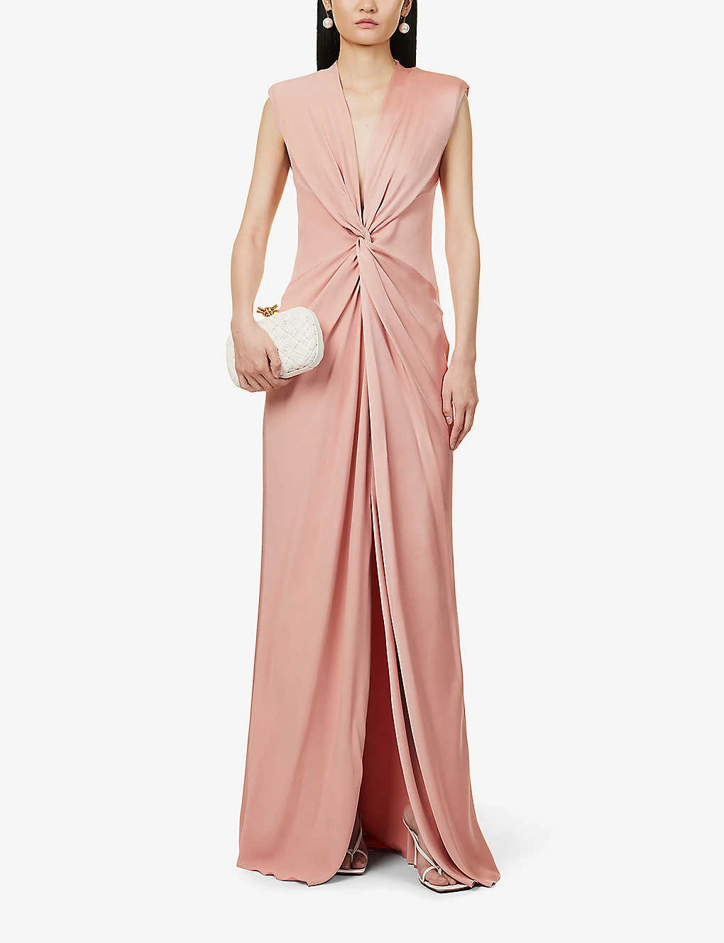 - Regular-fit, deep V-neck, shoulder pads, sleeveless, twist design at front, split at front, fully lined