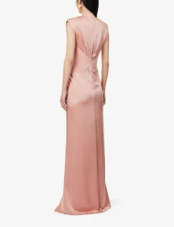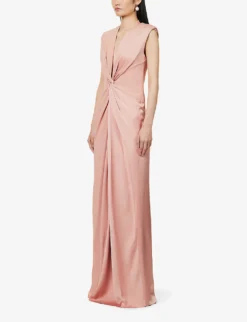 Pilard Padded-shoulders Gathered Woven Maxi Dress