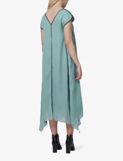 - Relaxed fit, V-neckline, quilted cap sleeves, contrast piping, handkerchief hem