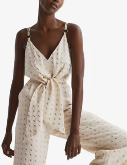Be the first to review “Reiss Scarlet Metallic-embroidery Woven Jumpsuit” Cancel reply