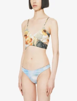 AllSaints Heidi Ines Graphic-print V-neck Stretch-woven Bikini