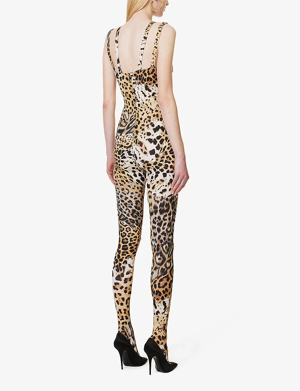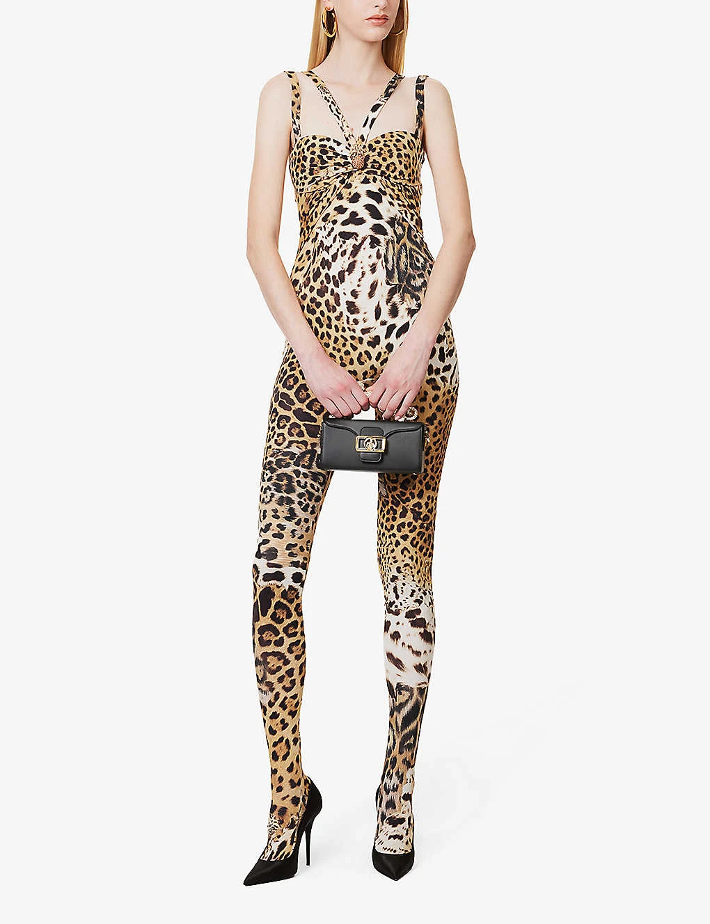 Roberto Cavalli Leopard-print Charm-embellished Stretch-woven Jumpsuit