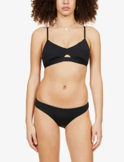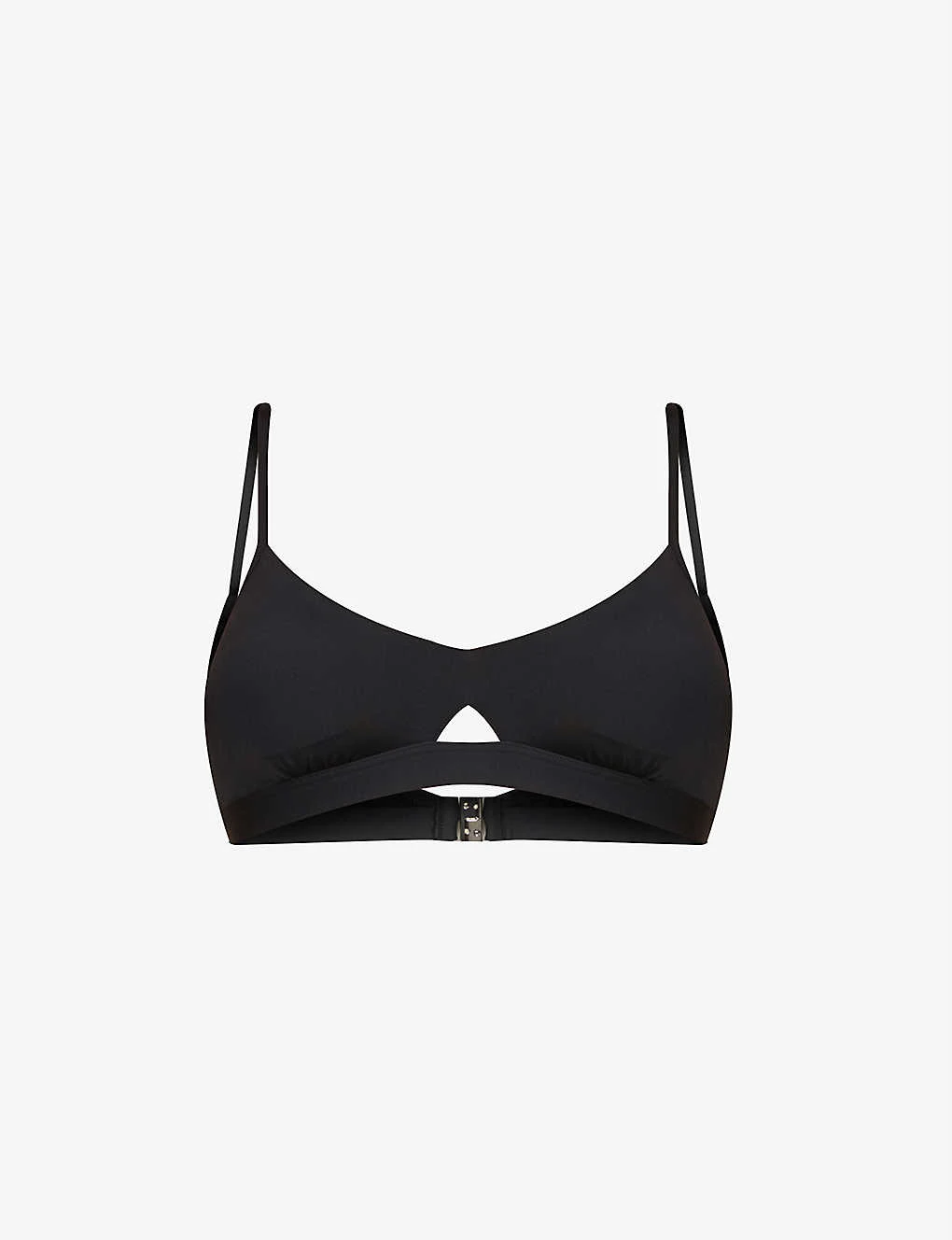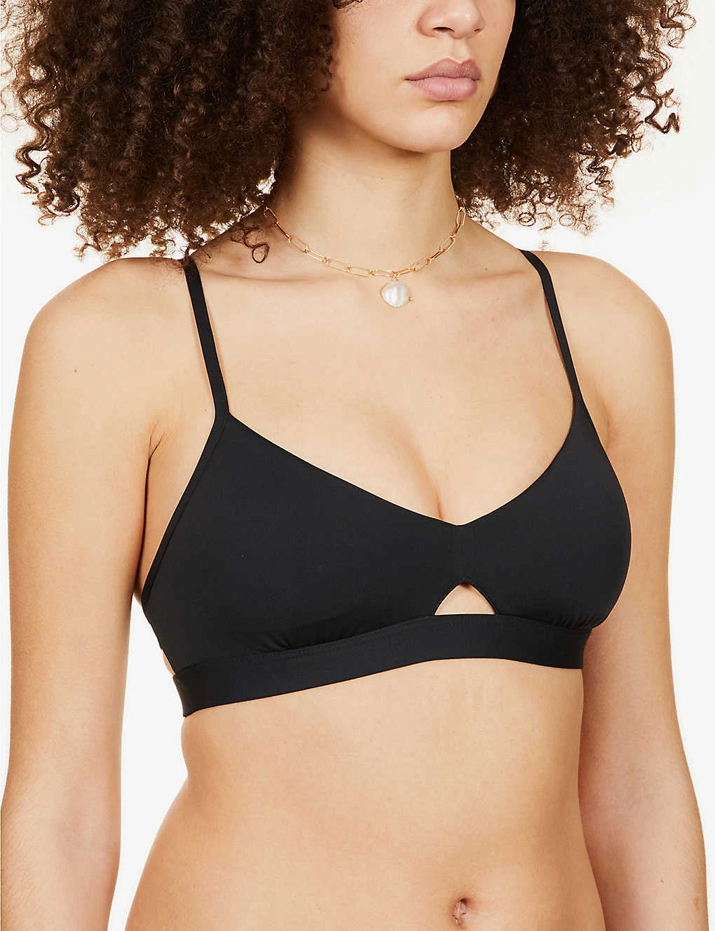- Adjustable shoulder straps, removable padding at cups, silver-toned hardware