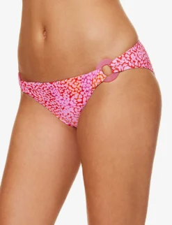 - Low rise, ring design at sides, all-over graphic print, medium-coverage at back, fully lined