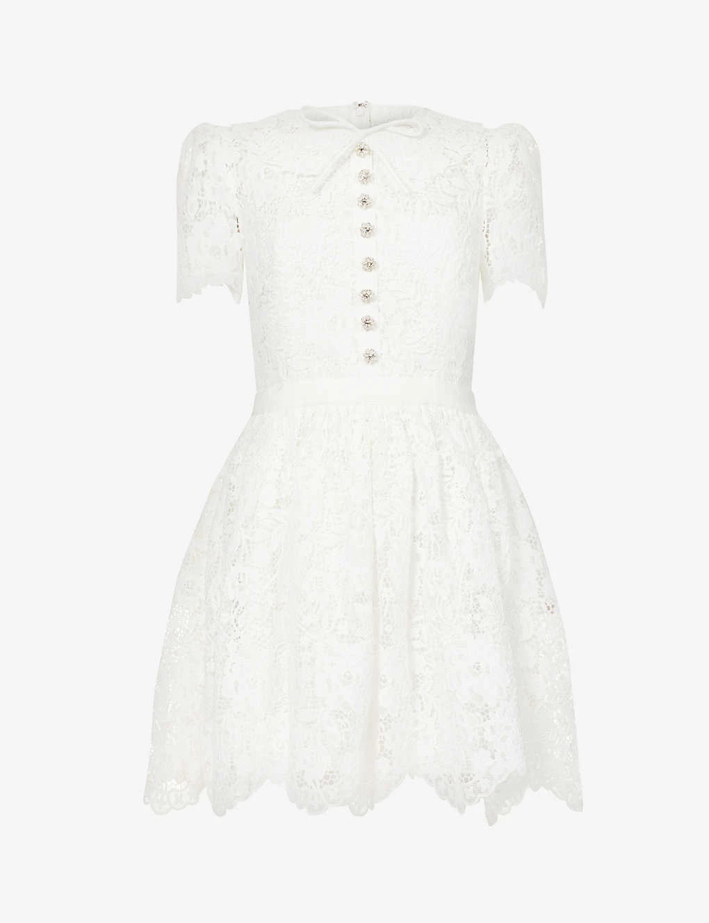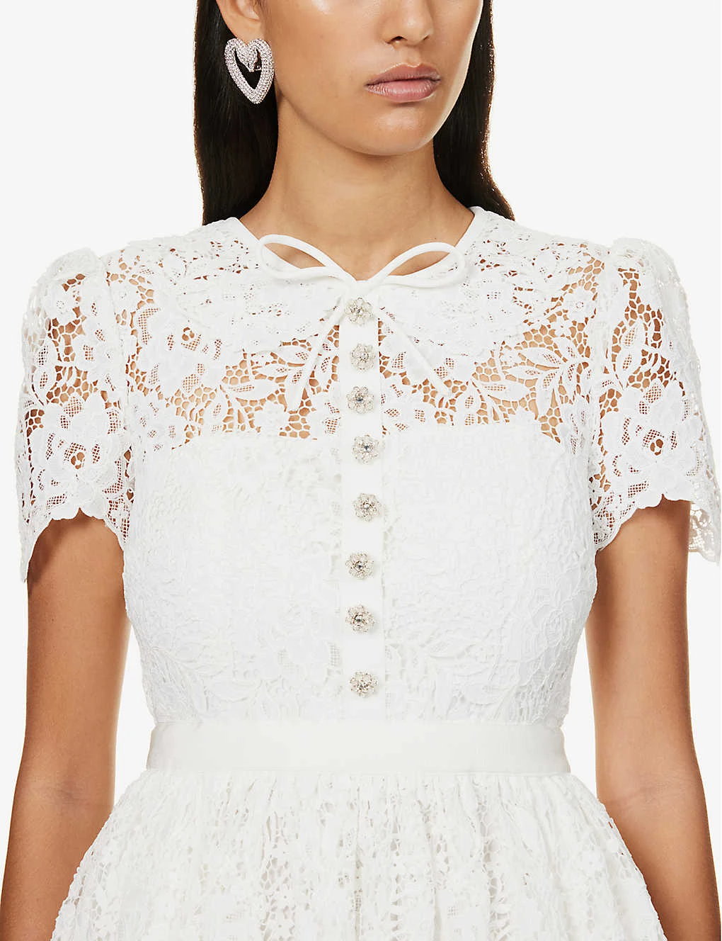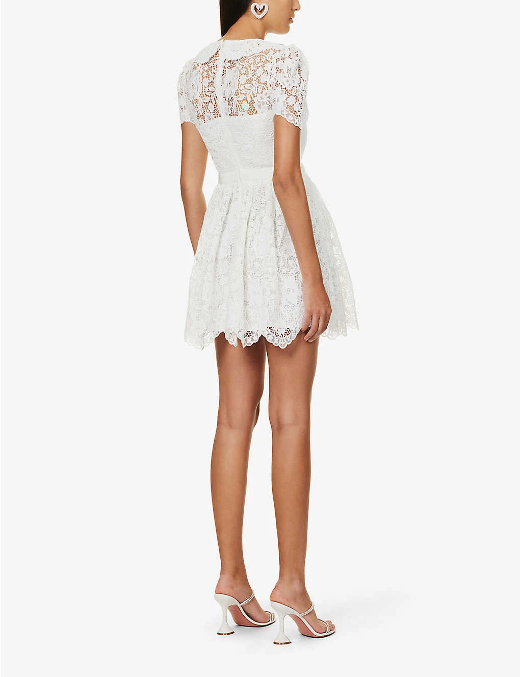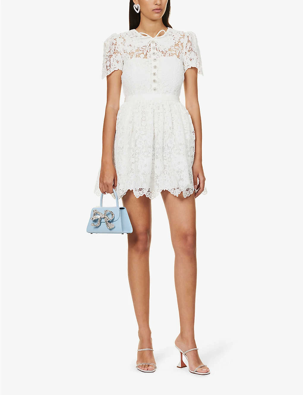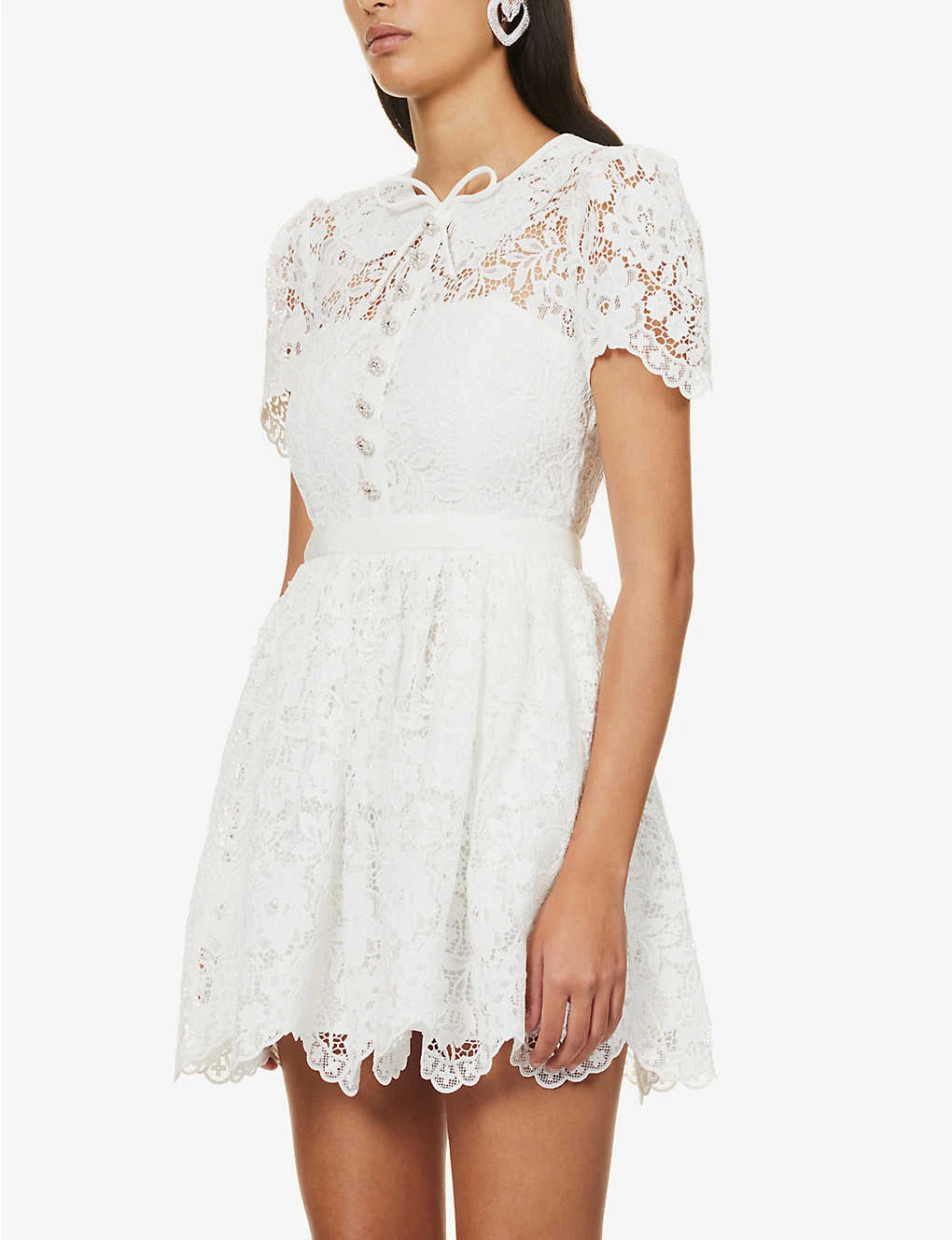 SELF PORTRAIT Neck-tie Floral-embroidered Lace Mini Dress