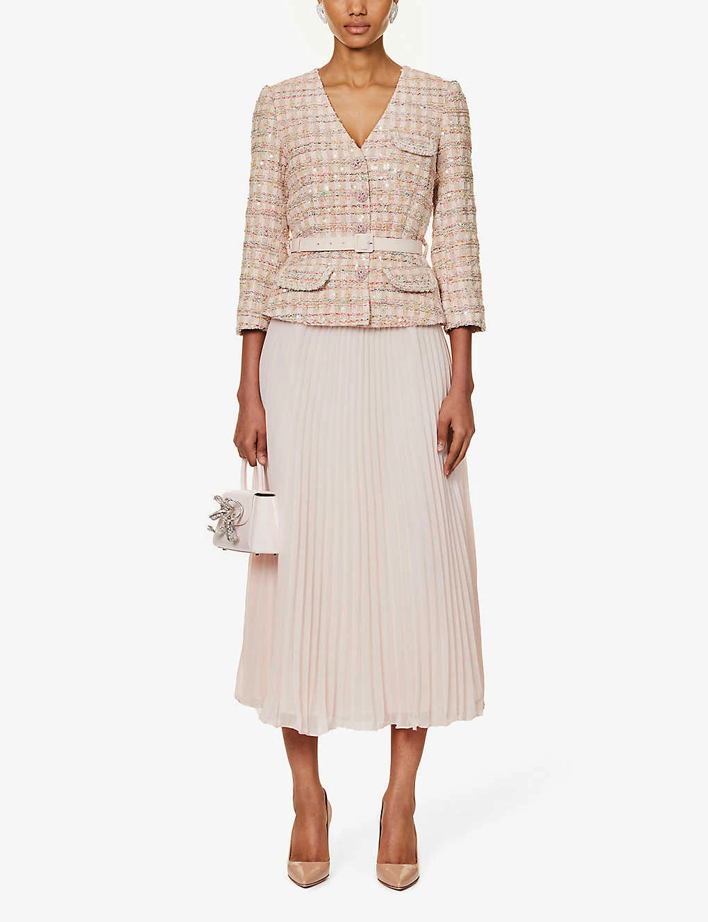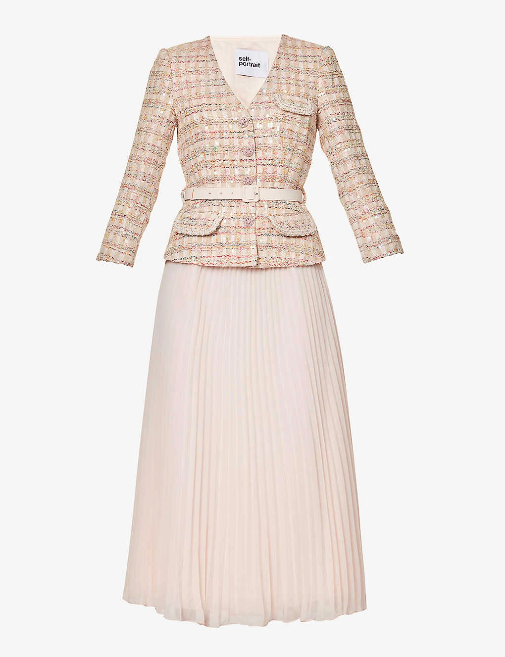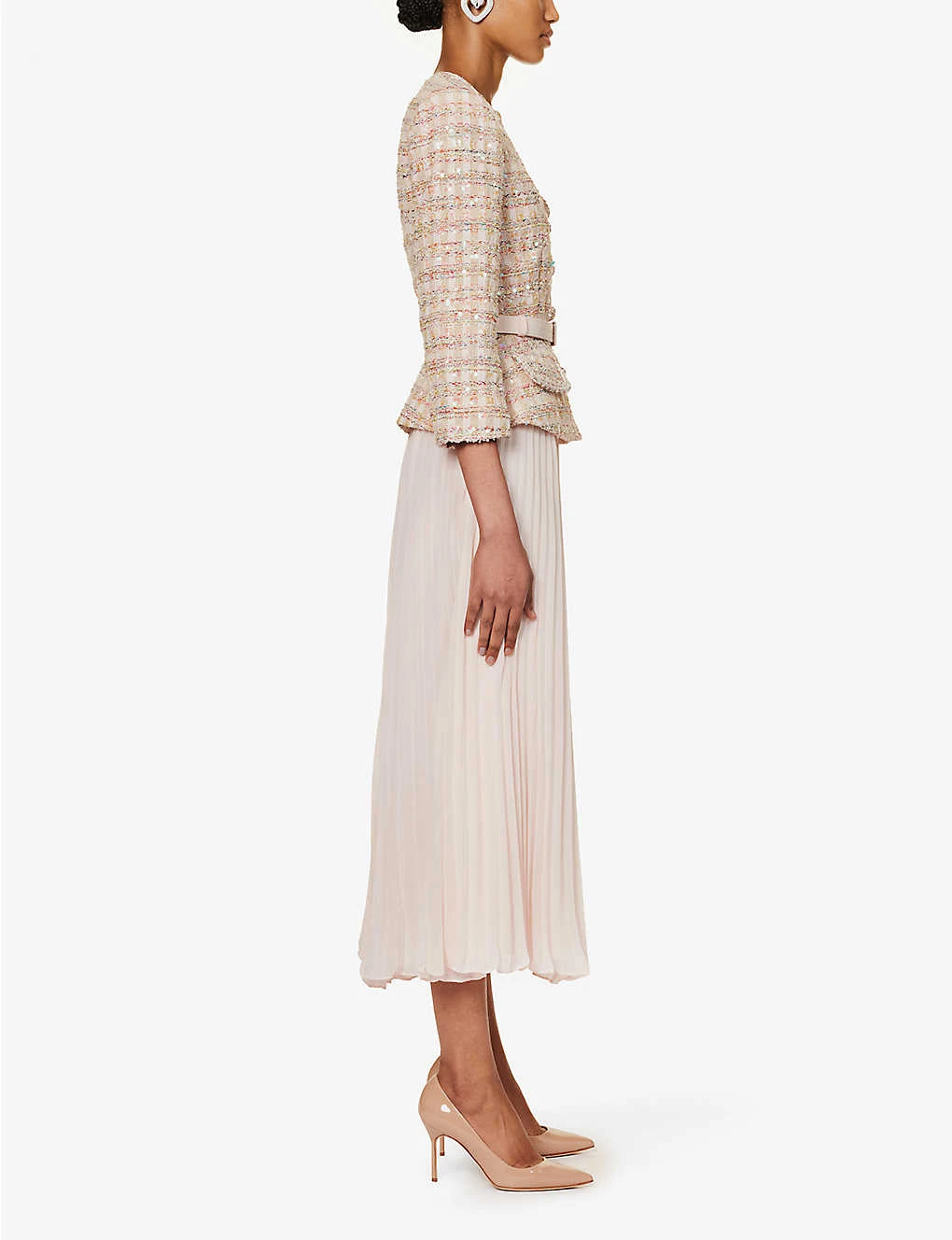 SELF PORTRAIT Sequin-embellished Pleated-skirt Woven Midi Dress