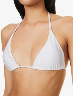 - Halter-neck, triangle cups, detachable padding, sheen finish, fully lined