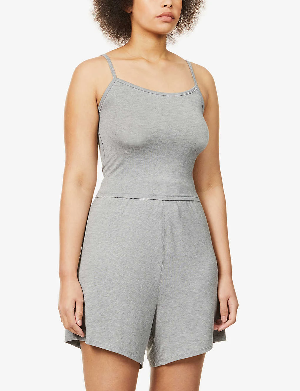 - High-rise, elasticated waistband, drawstring at waist, exposed seams, tonal stitching, straight hems