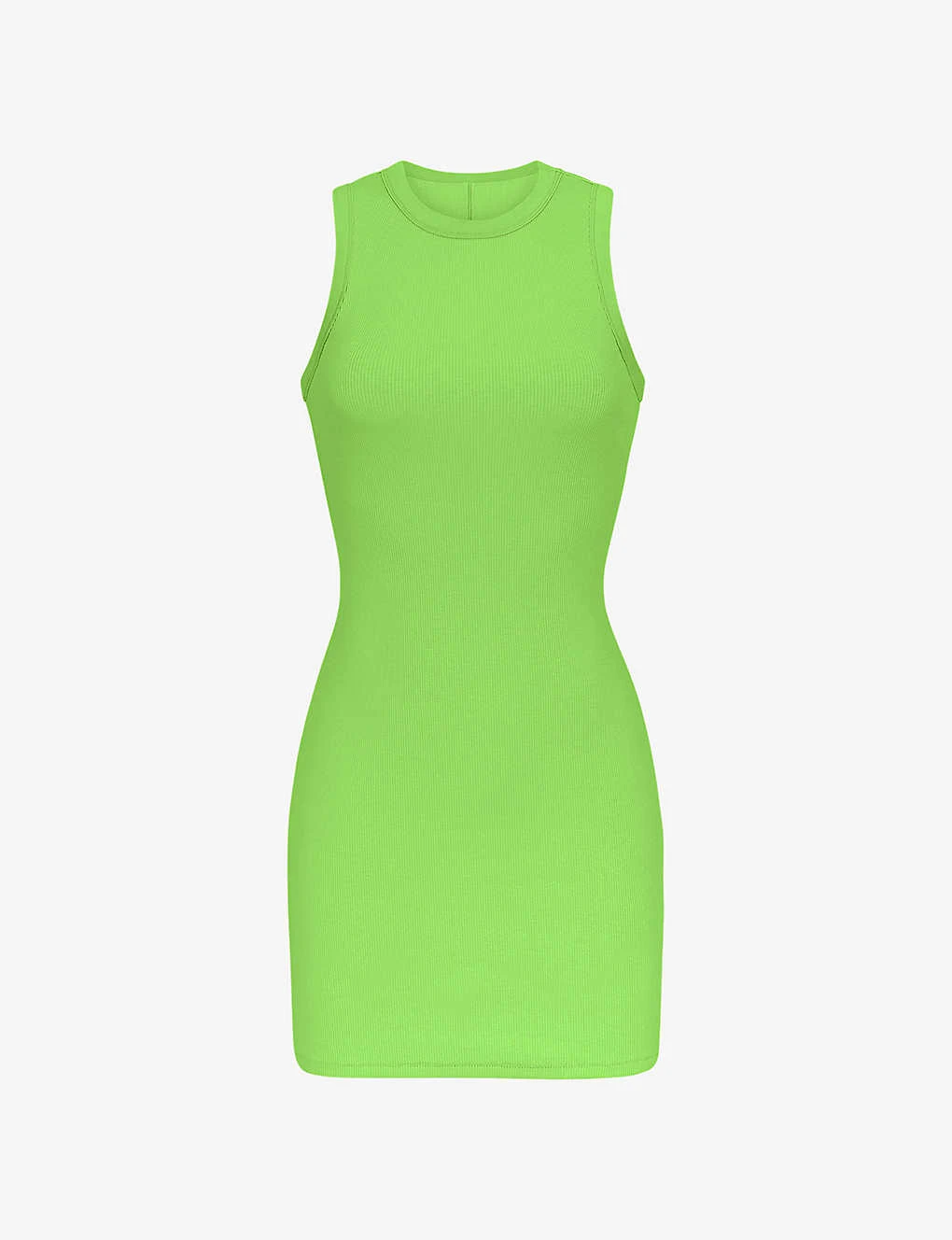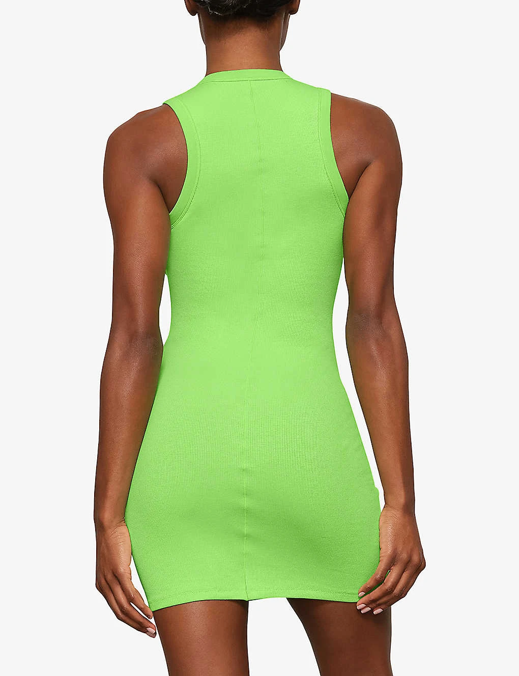 - Scoop neck, sleeveless, exposed seams, slim-fit, all-over ribbed texture