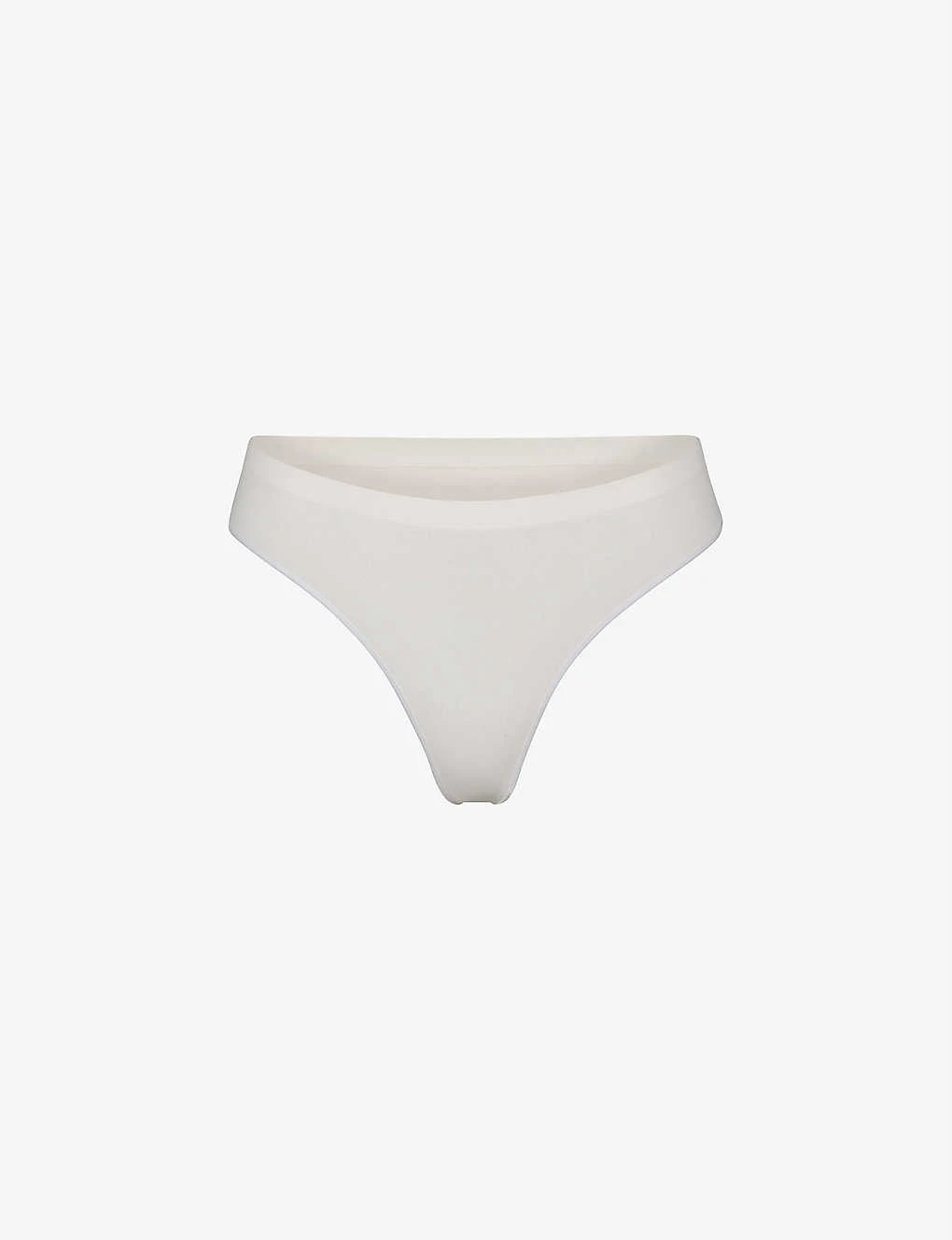 - Mid-rise, elasticated waistband, seamless, V-string at back, lined gusset