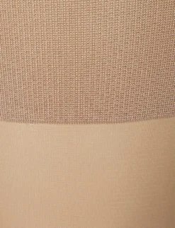 - High rise, sculpting panel at waist, non-slip waistband, double-lined gusset, sheer