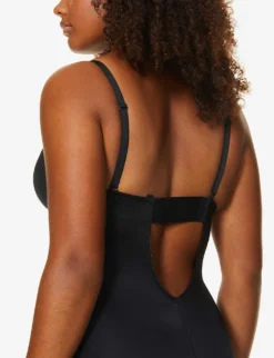 - Triangular padded cups, adjustable shoulder straps, under-wired at bust, fitted, scoop back, lined gusset