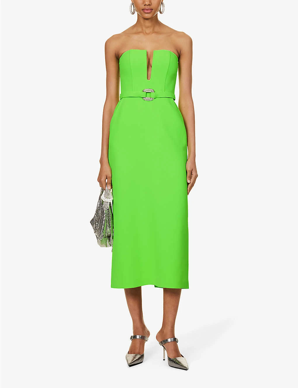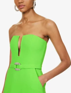 Strapless Buckle-embellished Stretch-woven Midi Dress