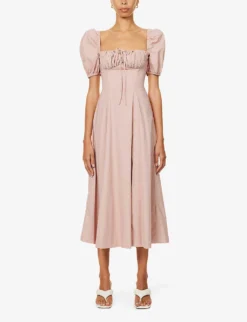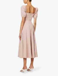 Tallulah Puffed-sleeve Cotton-blend Midi Dress