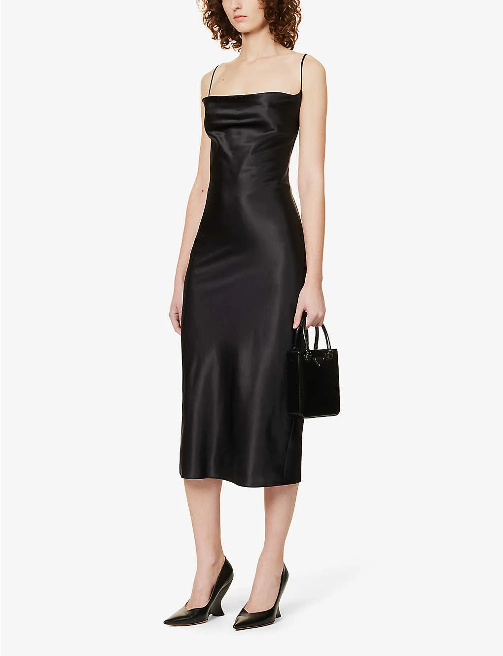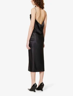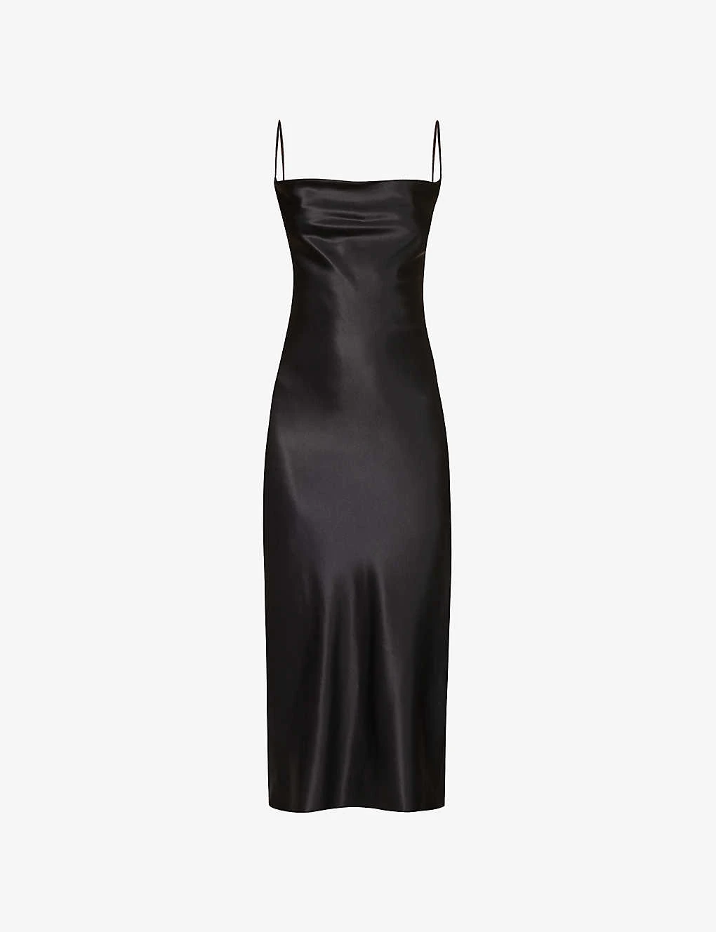 - Regular-fit, cowl neck, shoulder straps, all-over satin texture, bias-cut hem