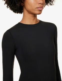 - Slim-fit, round neck, long sleeves, exposed seams