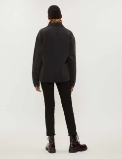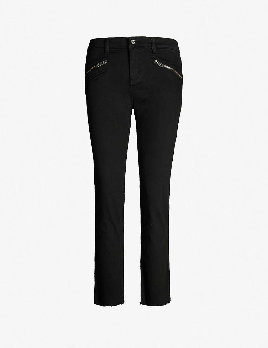 Zadig & Voltaire stretch-denim jeans Exposed button and concealed zip-fly fastening at front High-rise, skinny, cropped, belt loops, two zip fastening slip pockets at front, non-functioning jet pocket at front, buckle at side, branded silver-toned hardware, branded leather patch at back waistband, v-shaped yoke at back, patch pockets at back, raw hem 98% cotton, 2% elastane Machine wash True to size Size 28: Rise 10″”, inside leg 26.6″”, leg opening 13″” Model is 5ft7” and wears a size 28