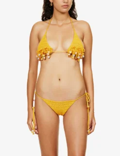 Jaded London Bead-embellished Crochet Cotton-blend Bikini Top