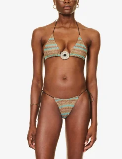 Jaded London Graphic-pattern Recycled-polyester-blend Bikini Top